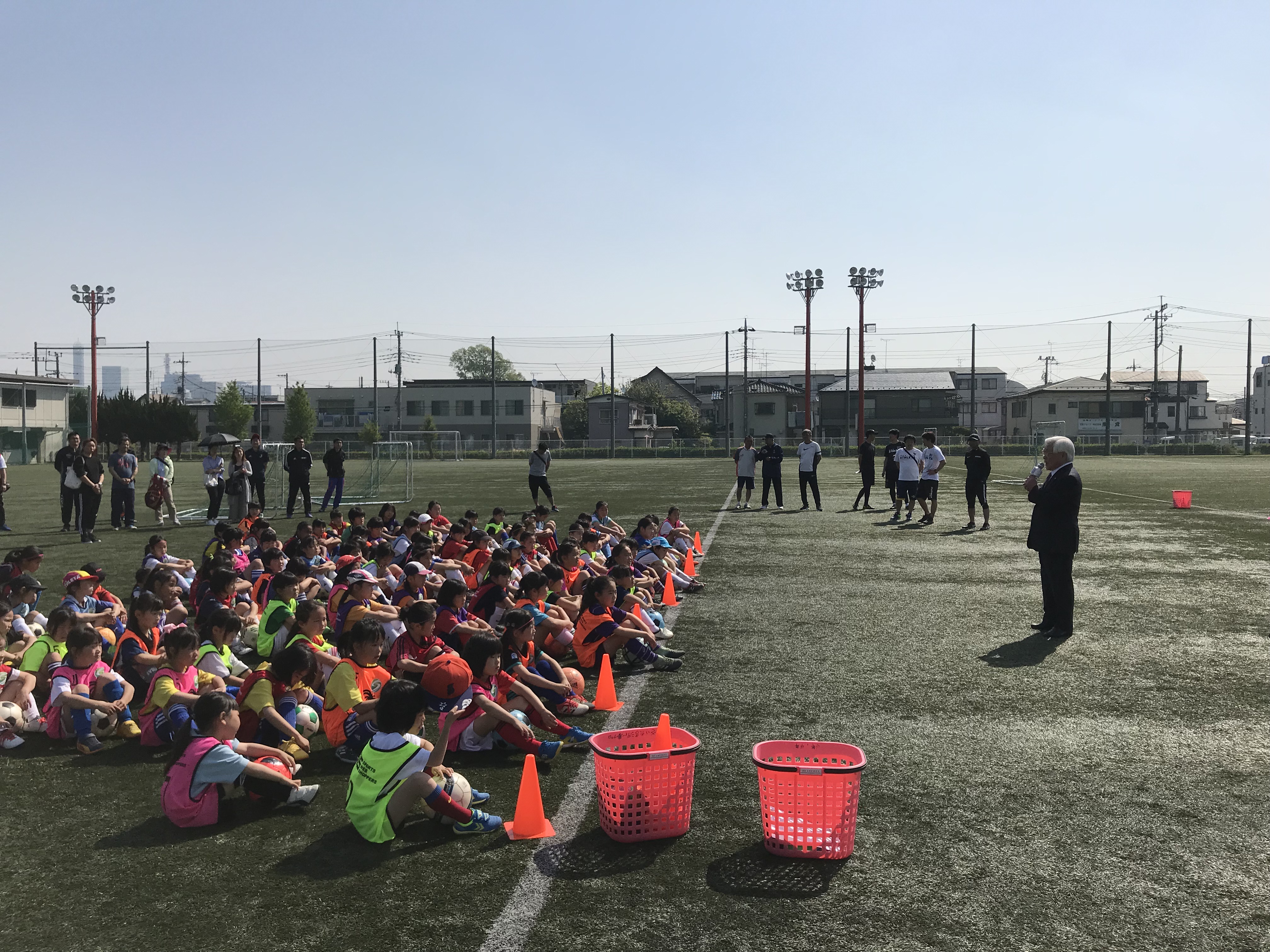 当日は晴天の中、元サッカー日本女子代表(なでしこジャパン)監督の佐々木則夫アドバイザーと共に、80名を超える女子選手がサッカーを楽しみました。